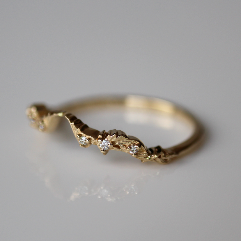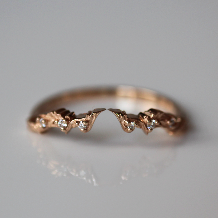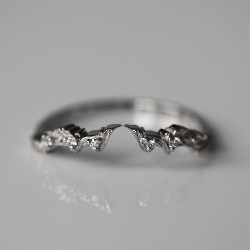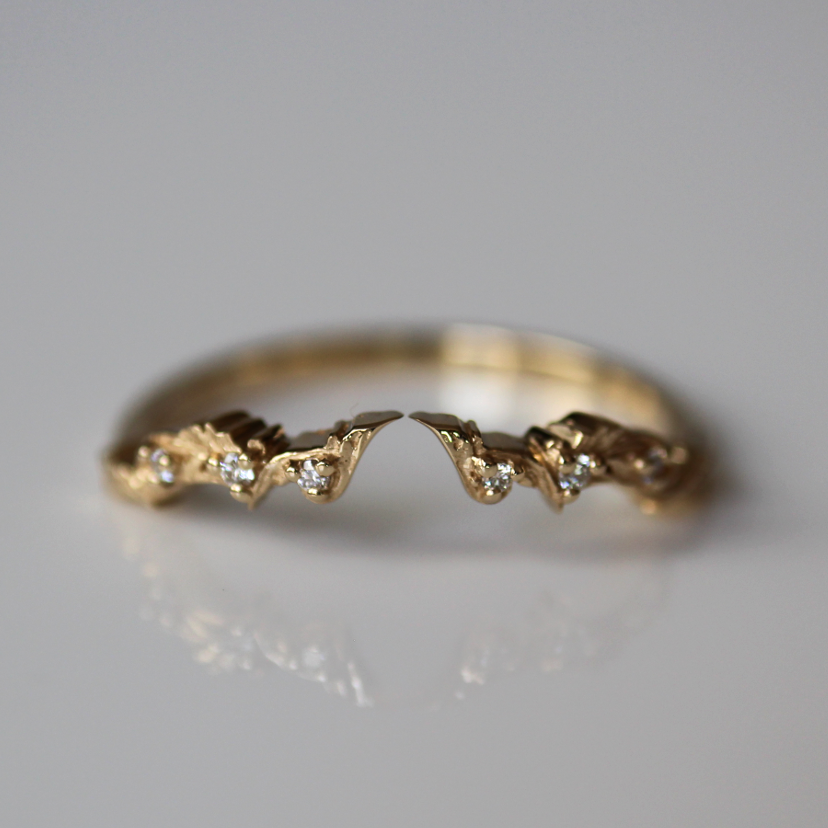 Inspired by the Sacred Realm and the Temple of Light in the Legend of Zelda: Ocarina of Time, this delicate band features six white diamonds surrounded by tiny golden wings. Its shape is designed to fit perfectly with the Goddesses' Relic Ring, like a delicate tiara.