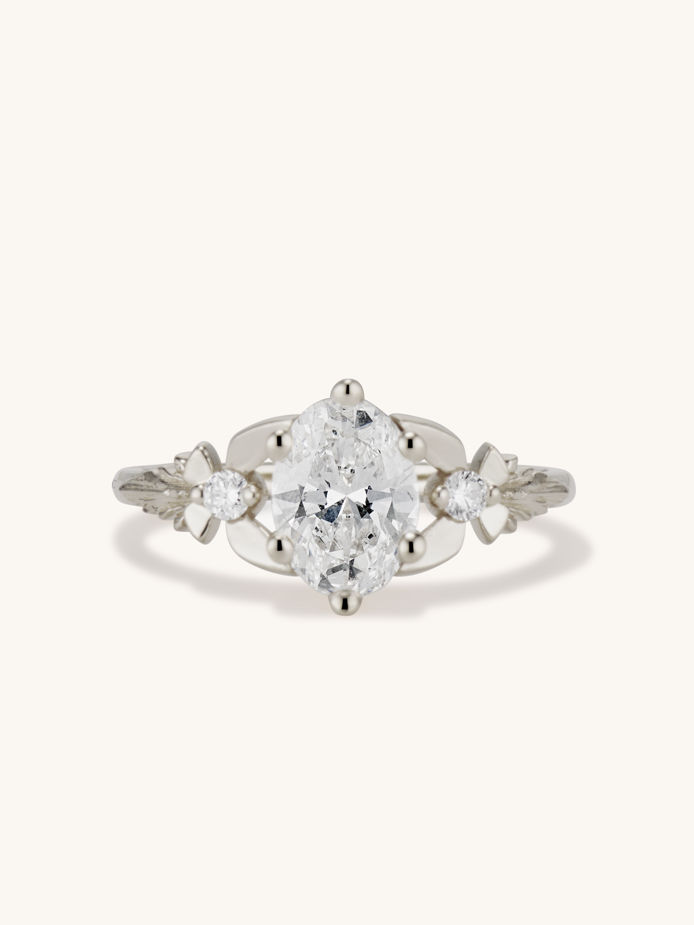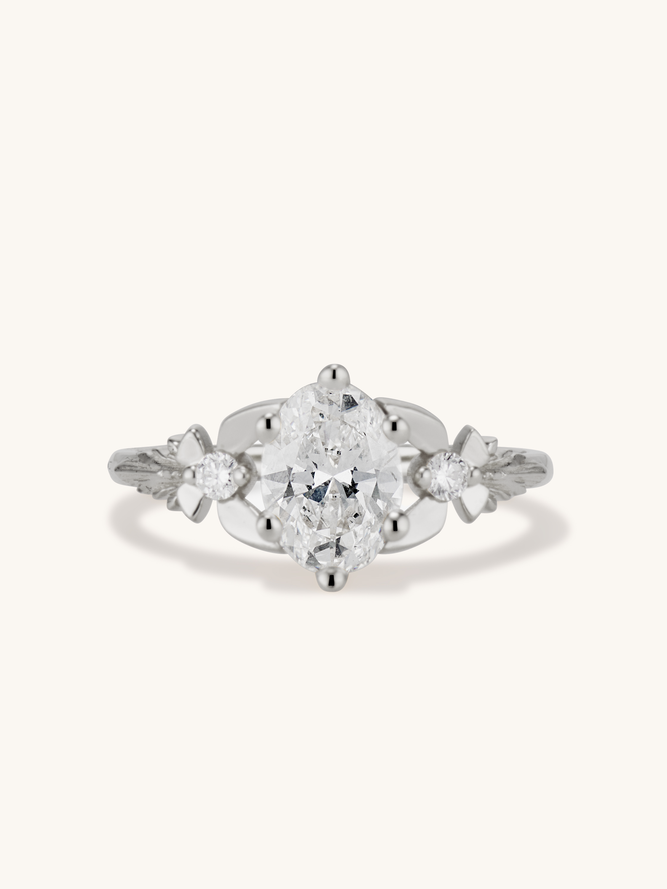 ✶ center stone: 1 ct. VS clarity, D-J color, VG cut, oval brilliant cut diamond