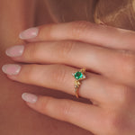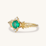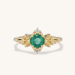 Inspired by the Kokiri's Emerald in the Legend of Zelda: Ocarina of Time, this ring is full of decorative details like tiny deku seeds, leaves, and swords.