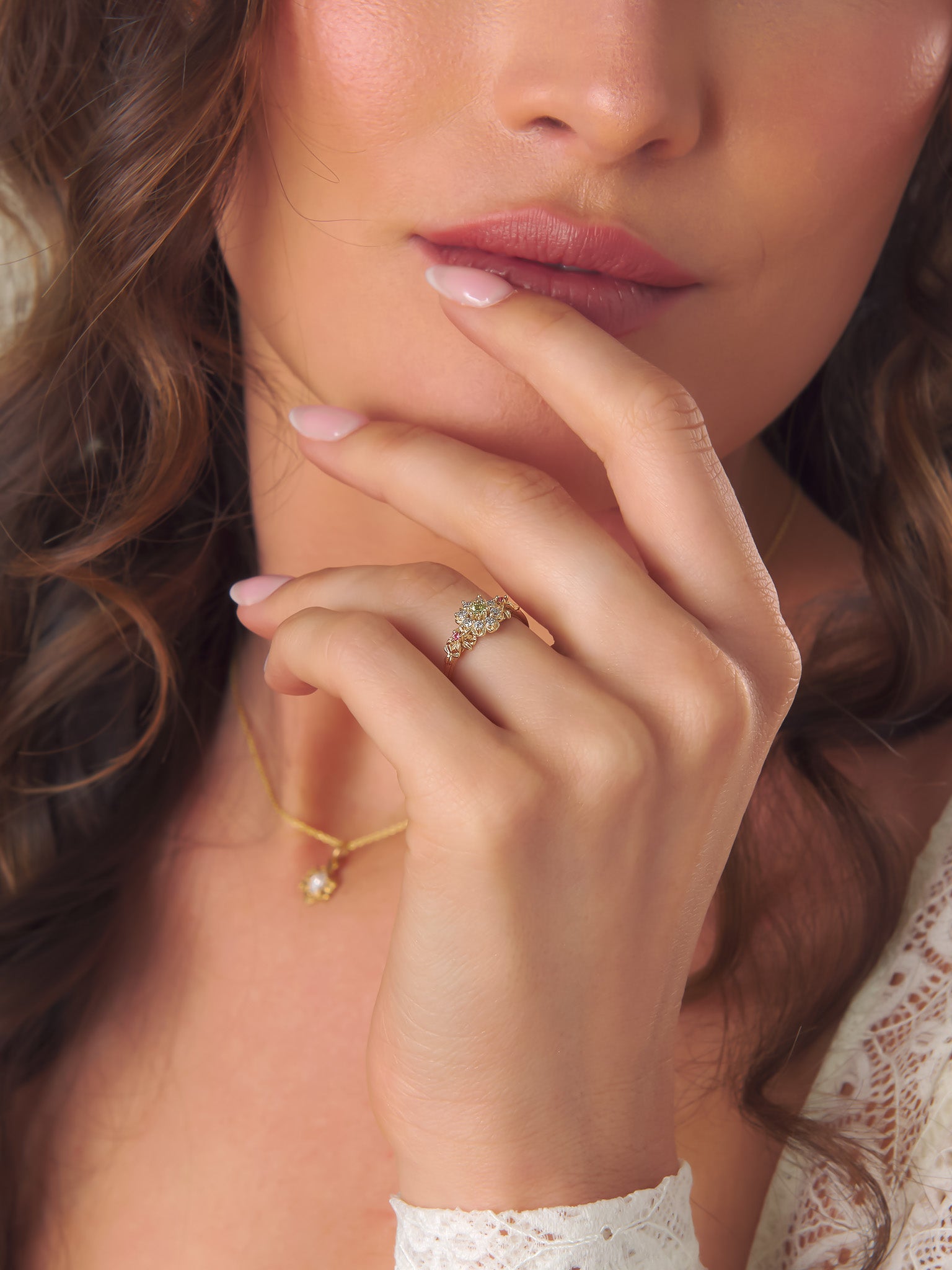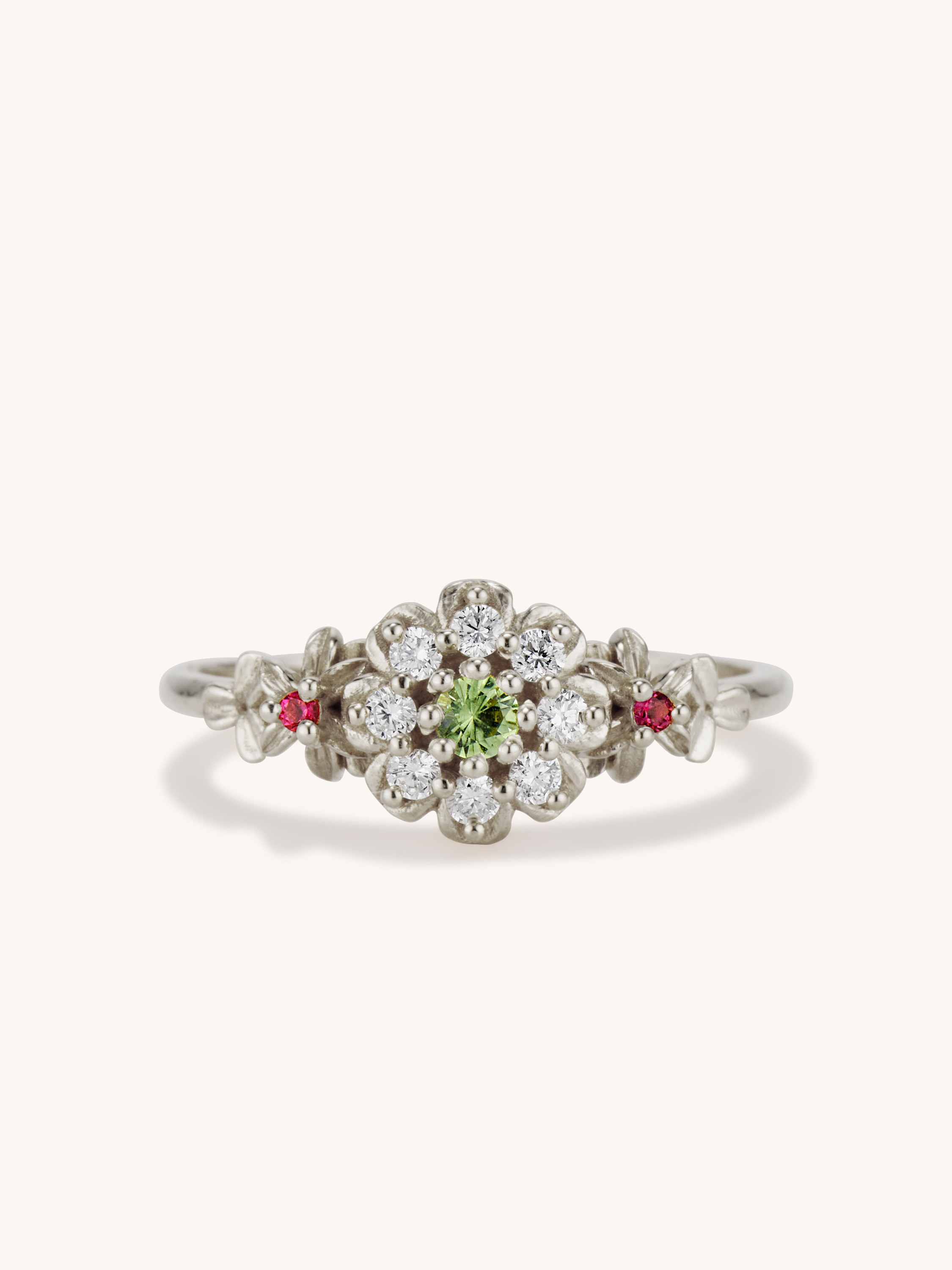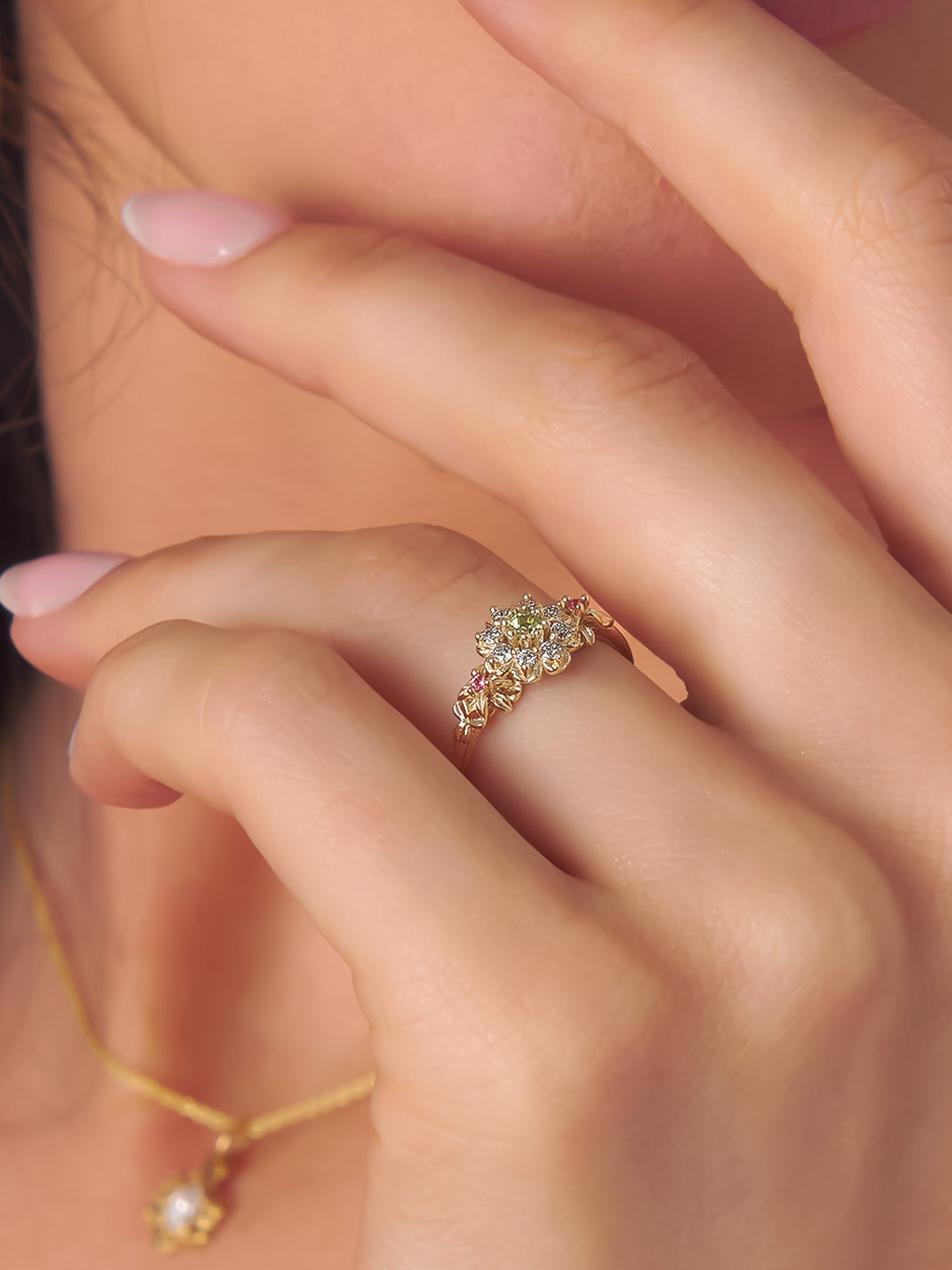One of the first details that stood out to me when watching Nintendo's E3 presentation of the new Animal Crossing game, New Horizons, was how unbelievably beautiful the weeds are! I knew I had to turn those beautiful seasonal weeds into engagement rings, so here's the first - the Haru Ring, inspired by the weeds that grow on your island in spring!