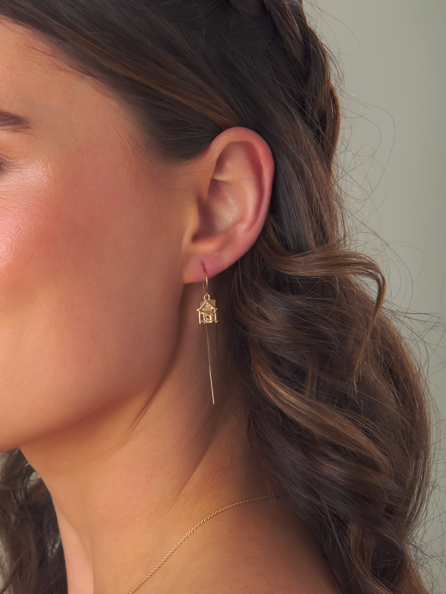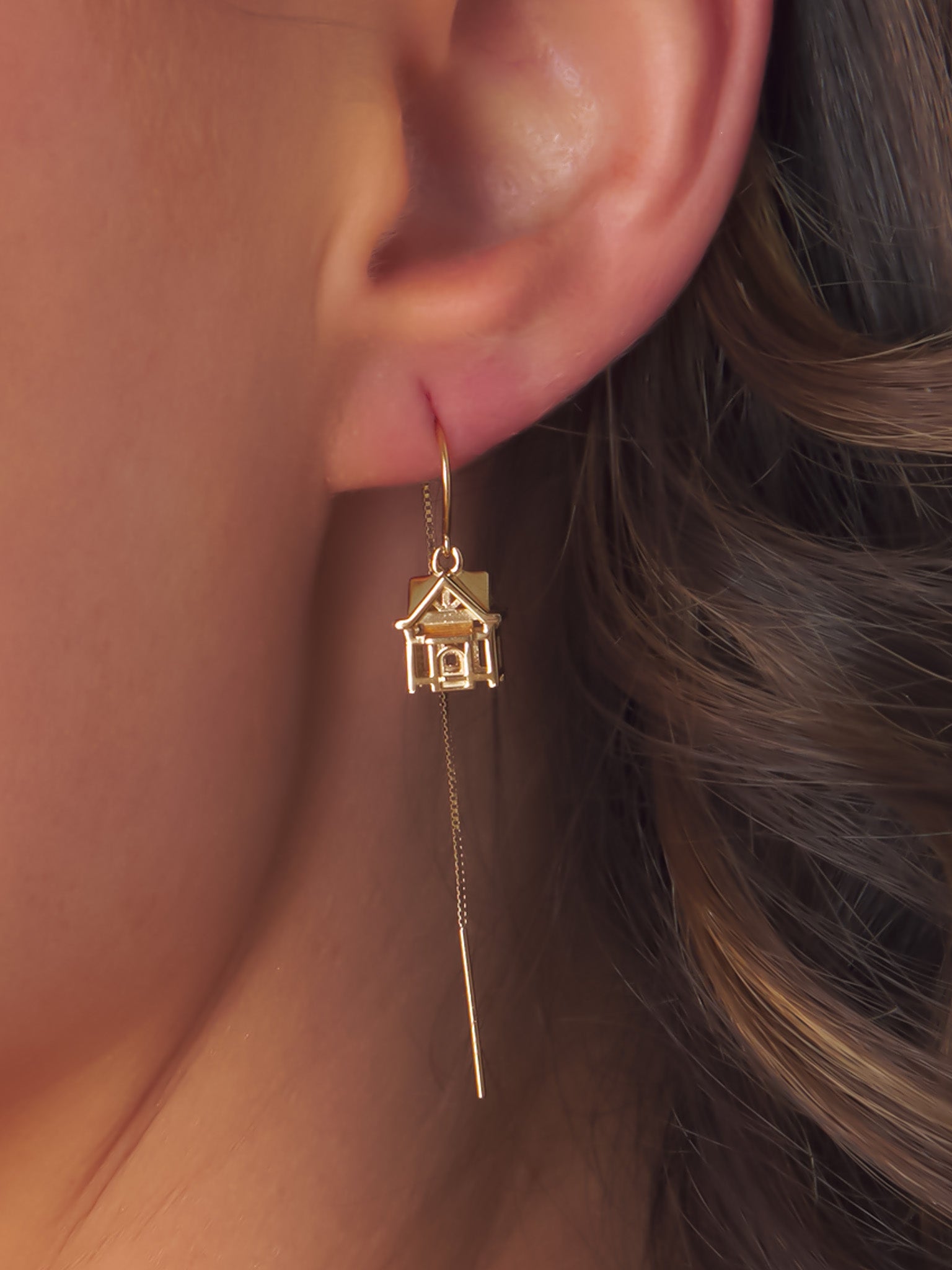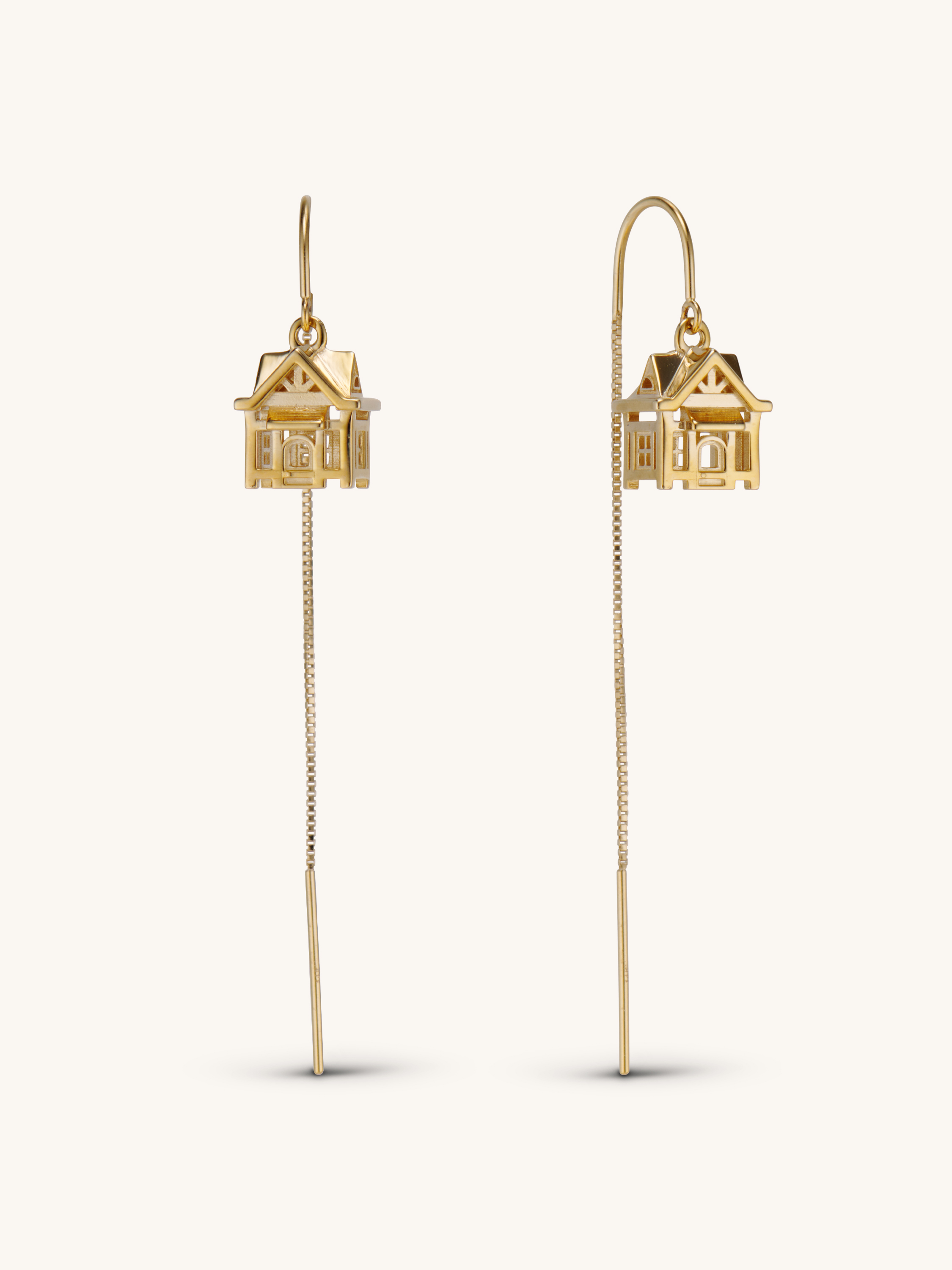 These intricate threader earrings are inspired by my first house in Animal Crossing. Threader earrings are so comfortable and versatile! The chain is long enough so that the earrings can be threaded through one or two piercings.