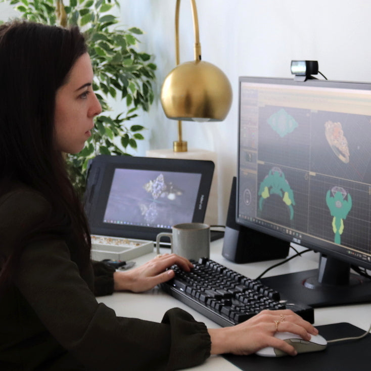 To ensure each finished product retains the high level of detail in the original 3D model, every piece of Soulbound jewelry is 3D printed to order before being cast in recycled gold. No molds, no mass-production. Each little masterpiece is crafted from scratch with the utmost care.