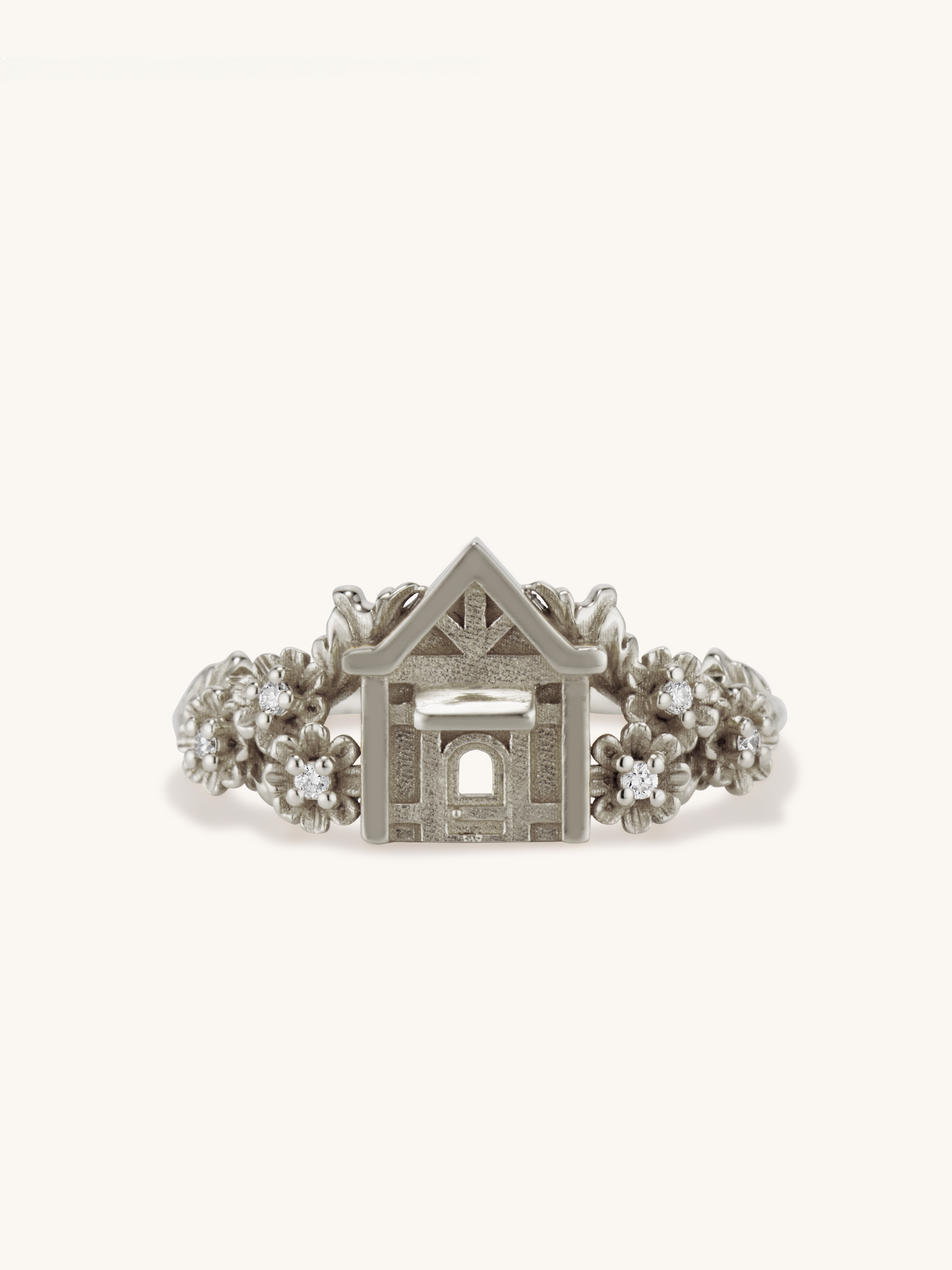 My first memories of the Animal Crossing series were lounging on a bean-bag chair in the basement of my parents' home. Playing Population Growing on my Gamecube, I would plant white cosmos flowers all around my house. I designed this ring to capture these special memories, playing a game that constantly reminds you to slow down and enjoy the simple beauty of life (something I rarely do now as a busy adult)